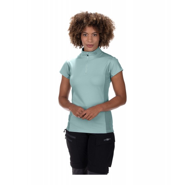 Функциональная рубашка с особенно просторными дышащими сетчатыми вставками, идеально подходит для жаркого лета. Спортивный воротник-стойка с застежкой-молнией и крупным принтом на спине. Высококачественный материал Oderless способен значительно снизить рост бактерий, вызывающих запах, поэтому вы будете чувствовать себя комфортно в этой рубашке даже после долгого дня. Эластичный и быстросохнущий материал. 79% полиэстер, 21% эластан. Сетка 100% полиэстер.