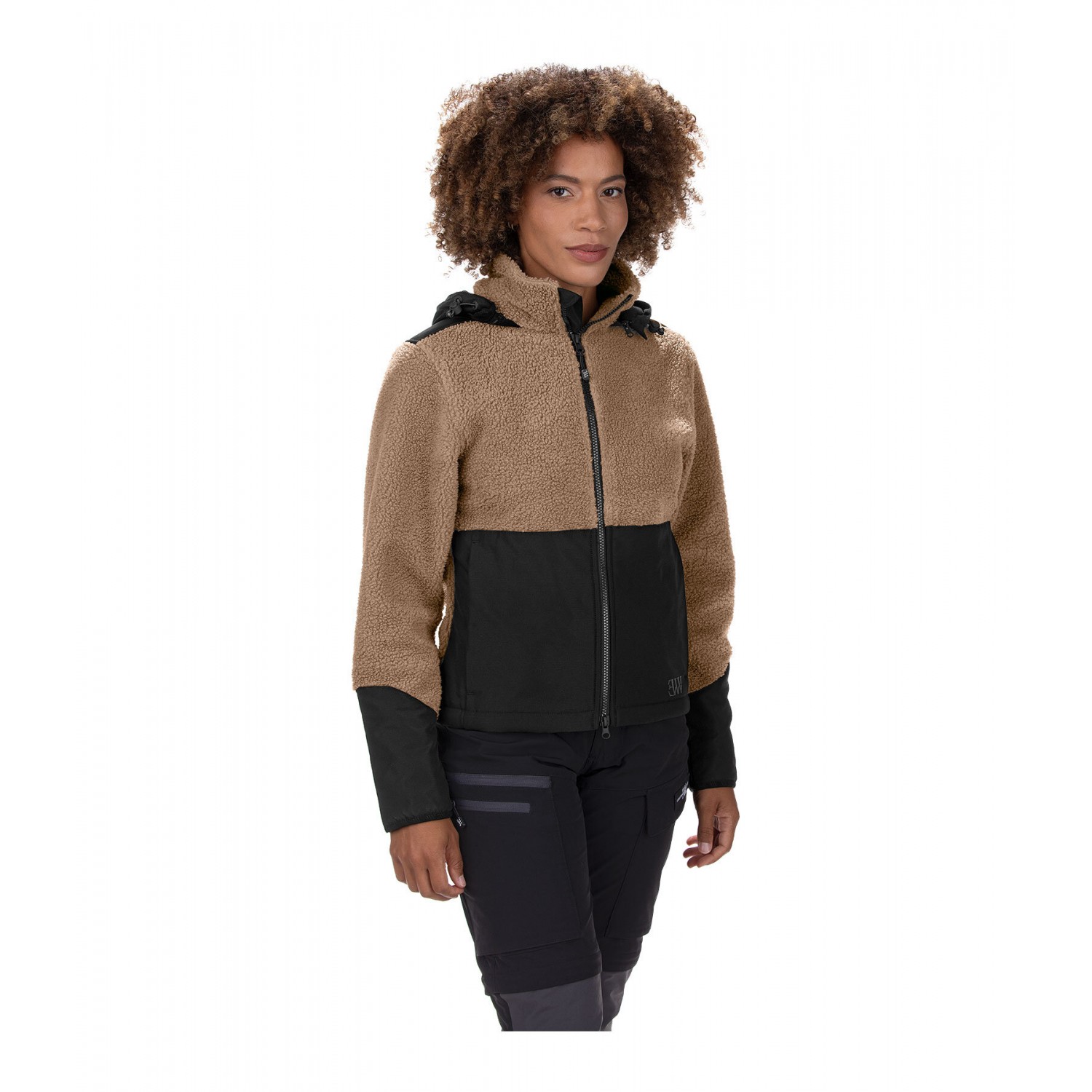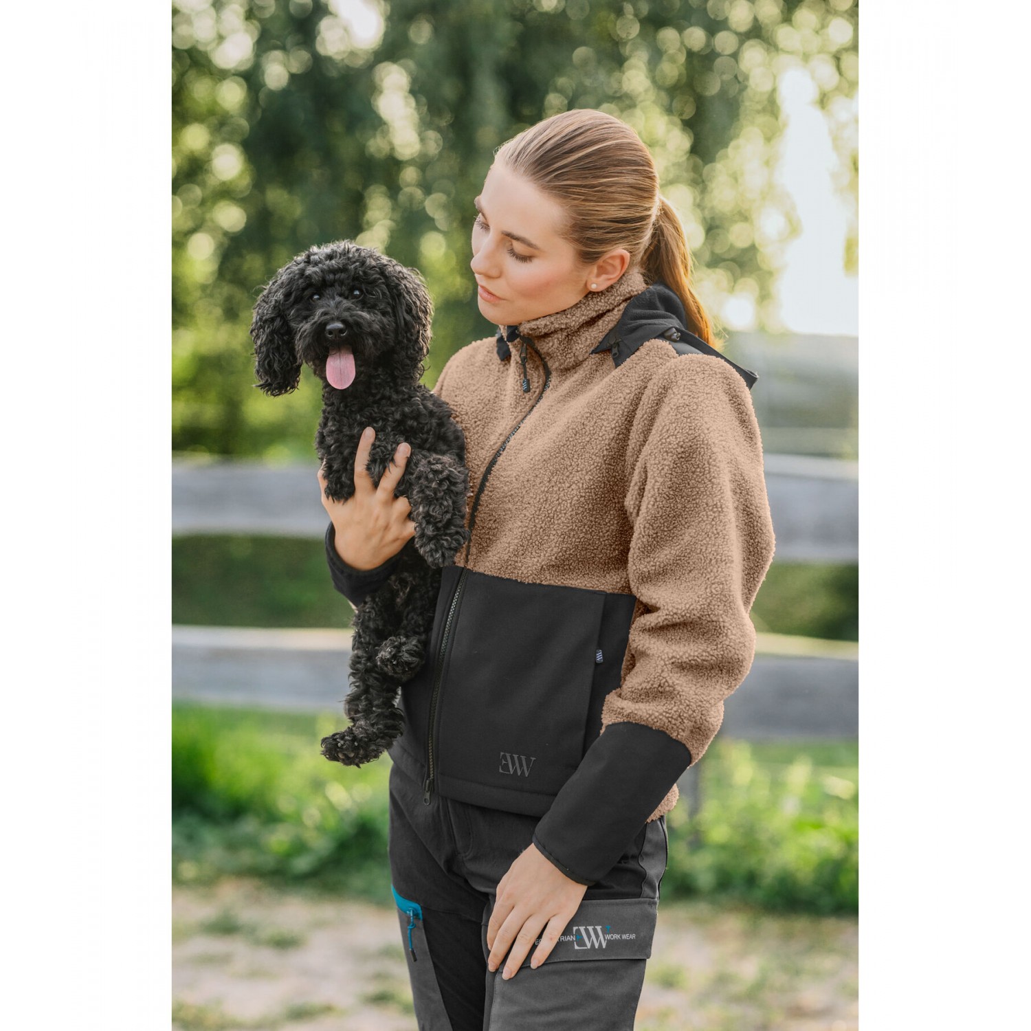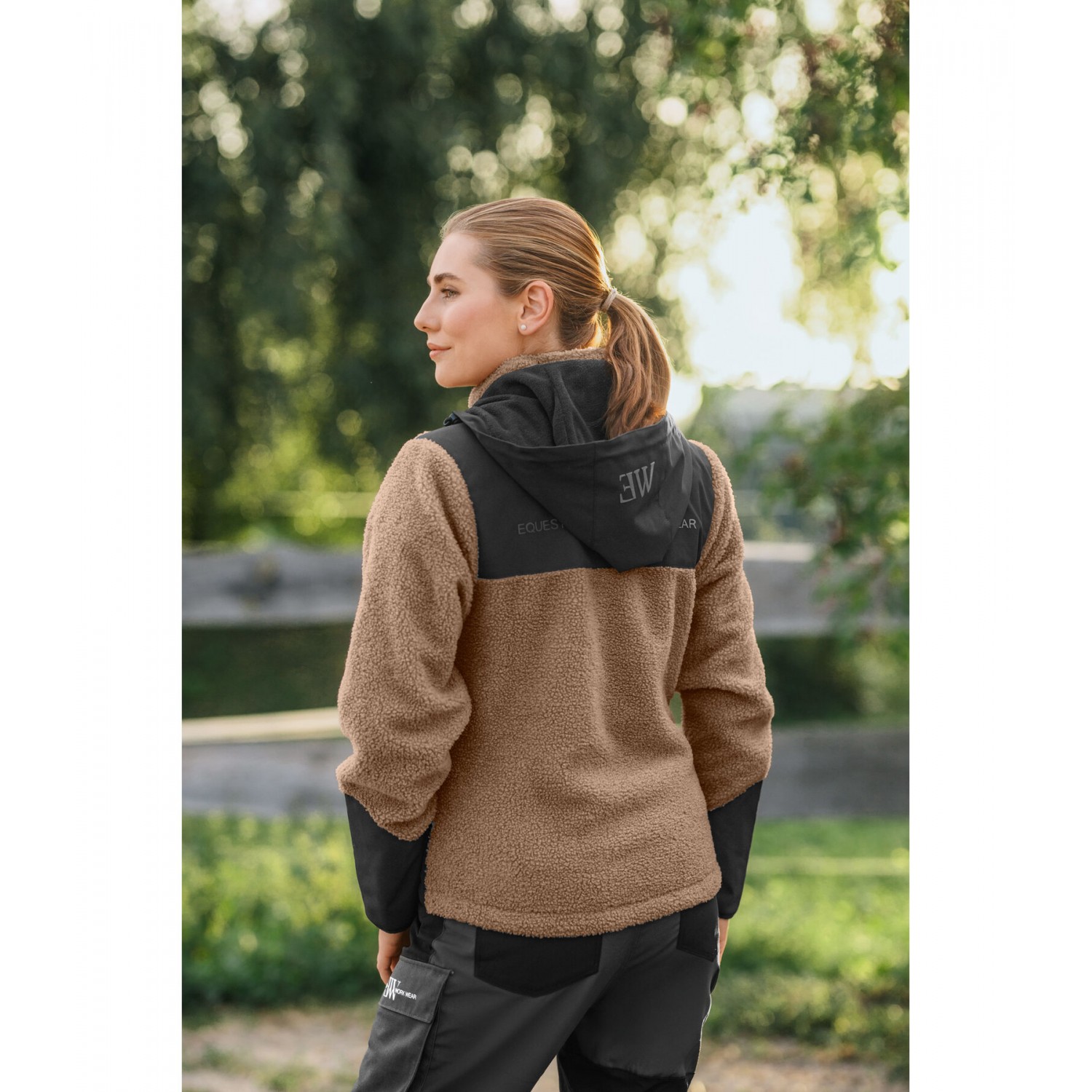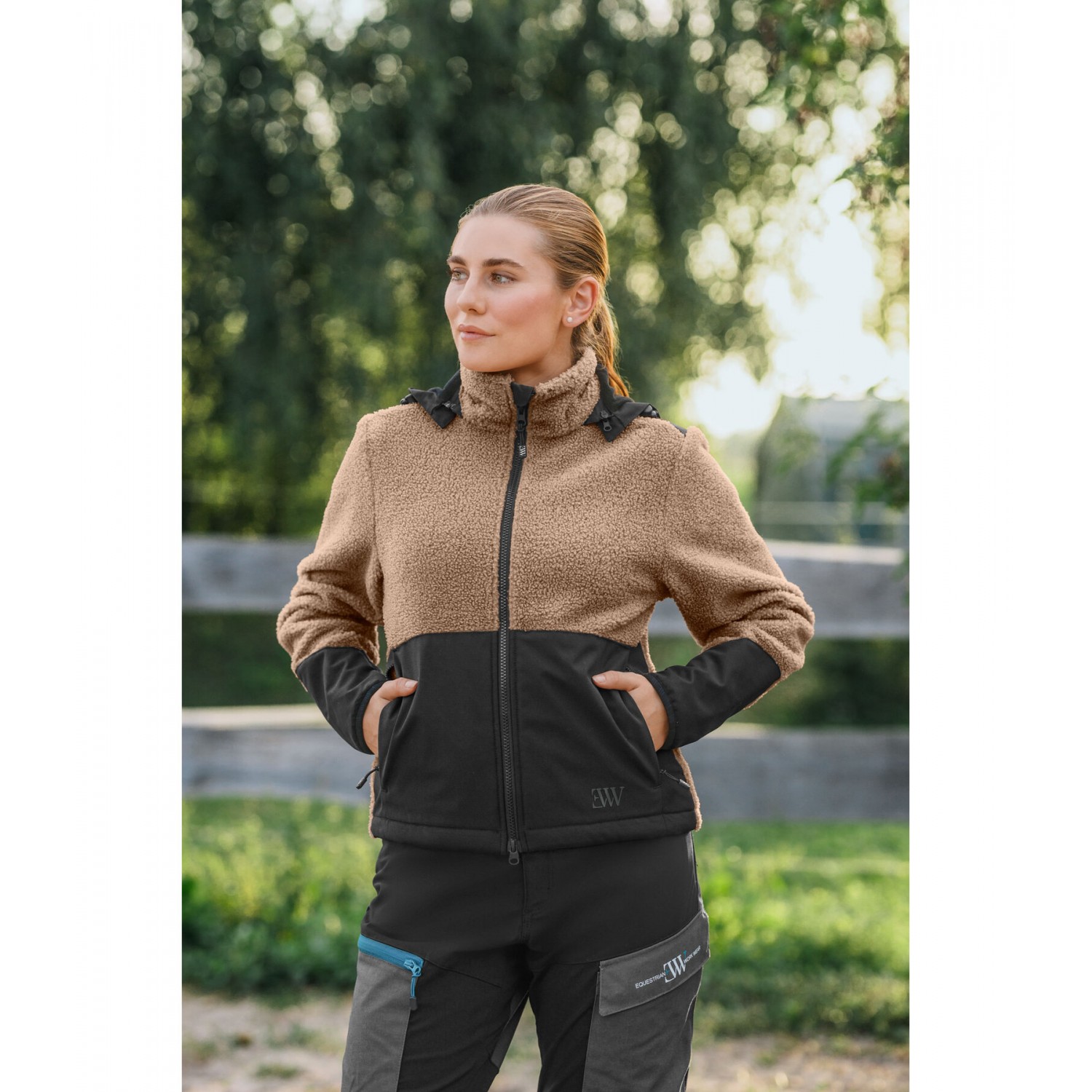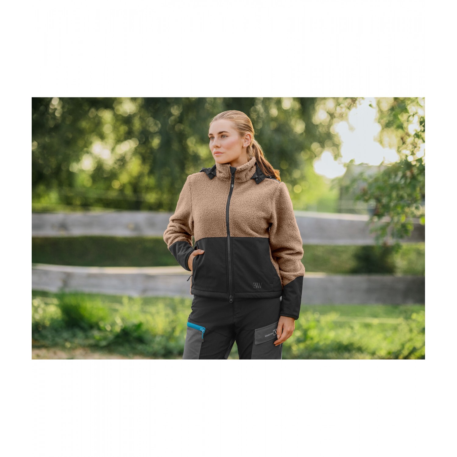 Мягкая, но при этом легкая куртка из флиса «шерпа» со съемным капюшоном, идеально подходящая для переменчивой погоды. Внешний материал выполнен из пушистой, дышащей ткани «шерпа» с внутренней подкладкой из начеса. Прочные, ветро- и грязеотталкивающие вставки на предплечьях, талии и плечах делают эту куртку с капюшоном незаменимой для работы на открытом воздухе в конюшне. Особенности включают в себя двустороннюю молнию с подкладкой и защитой подбородка, а также два кармана на молнии. Куртка имеет регулируемый эластичный низ и мягкие манжеты. Съемный регулируемый капюшон застегивается на кнопку сзади. 100% полиэстер.