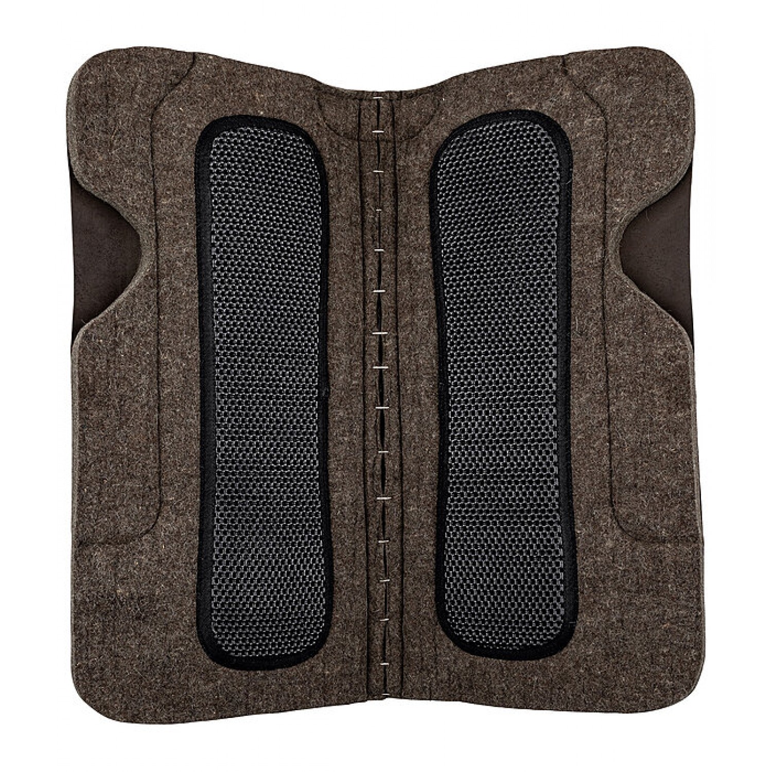 Дышащая войлочная подкладка со вставками из хлоропреновой резины снизу предотвращает скольжение седла, сохраняя при этом воздухопроницаемость. Амортизирует. С кожаной отделкой и тиснёным логотипом бренда. Размер: 81 x 81 см. Толщина: 2,54 см. Войлок: 100% шерсть.