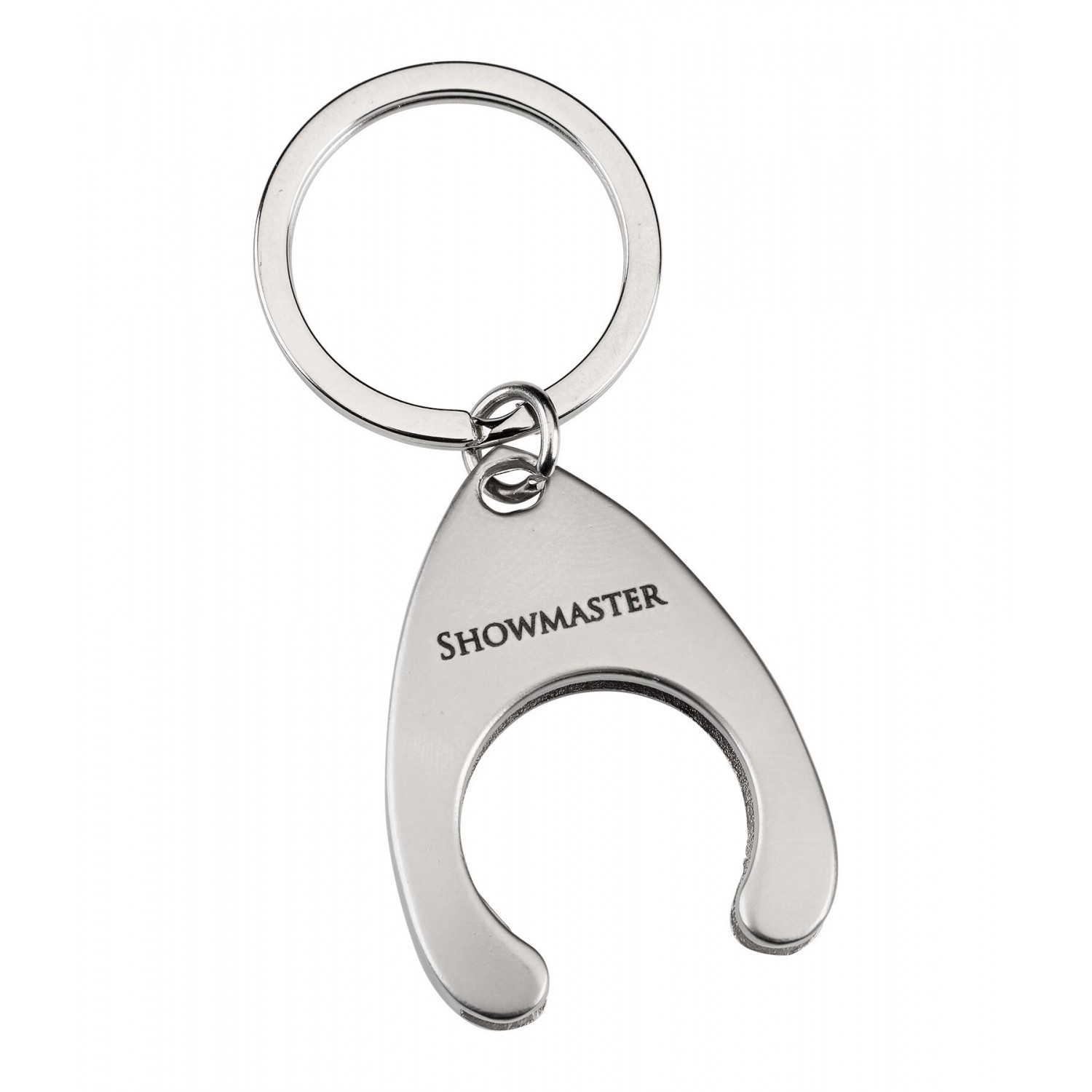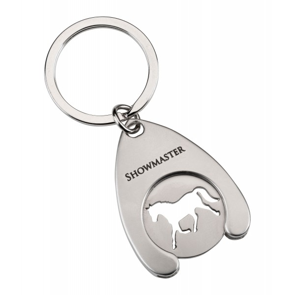 Брелок с вкладышем размером с евромонету и вырезанным силуэтом лошади для использования в тележках для покупок.