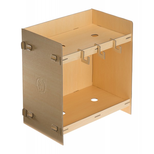 Конюшня для игрушечных лошадок SHOWMASTER рассчитана на двух лошадок и изготовлена из прочного картона с отделкой под дерево. Отверстия в крышке и основании точно совпадают с отверстием для конкурной лошадки SHOWMASTER 621912, обеспечивая надежную и устойчивую посадку лошадки в конюшне. Практичные крючки на передней части конюшни позволяют закрепить соответствующую недоуздок для игрушечной лошадки SHOWMASTER 621947.