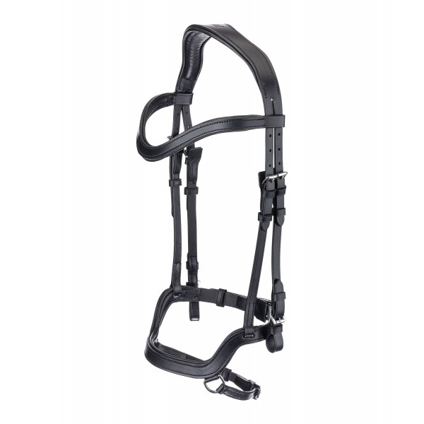 Спортивная, анатомическая уздечка из мягкой промасленной кожи с простым налобником. Сочетает в себе элементы английского и ганноверского стилей. Боковое крепление ремня с двумя кольцами предотвращает повышенное давление на носовую кость и обеспечивает значительно более гибкую регулировку и большую свободу движений ноздрей. Имеет очень мягкую подкладку из натуральной кожи. Изготовлена из промасленной кожи. Фурнитура серебристого цвета. Повод и трензель в комплект не входят.