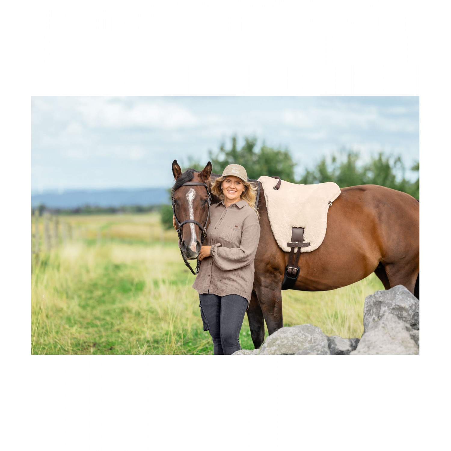 Очень удобная, дышащая подкладка для верховой езды из стриженой австралийской овечьей шерсти. С ручкой и подпругами из синтетической кожи. Оснащена несколькими D-образными кольцами для крепления седельных сумок. 100% овечья шерсть. Стирать подстилку вручную с использованием моющего средства для овечьей шерсти, затем сушить на воздухе.