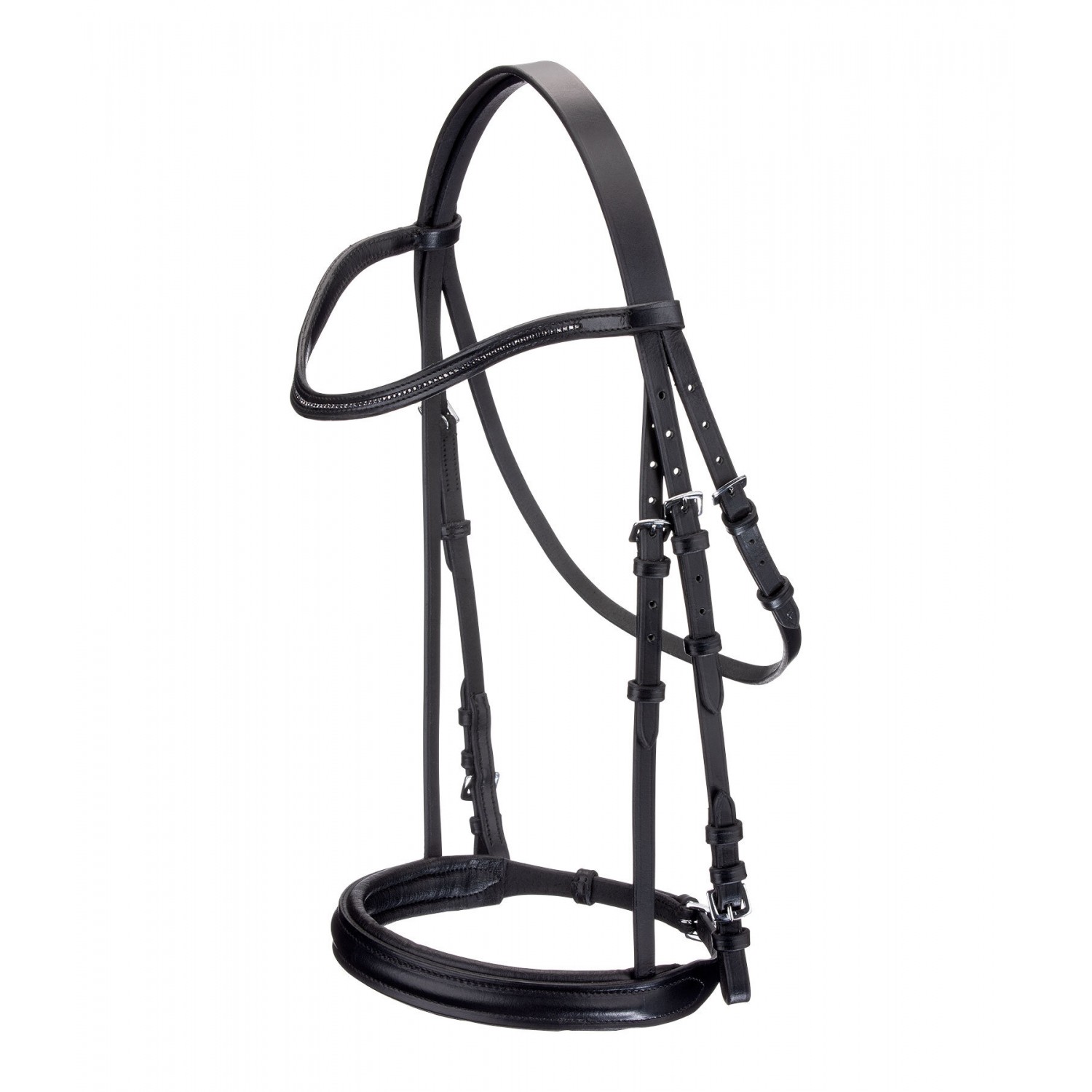 Привлекательная английская уздечка с изогнутым налобником. В комплекте повод.